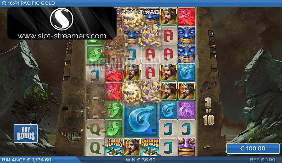 The interplay of features is as good in Pacific Gold as it has been in any other Gold game. The new bits, specifically the Ghost Box and Pacific Wave, cleverly fit the regular Gold mechanics like a glove. They don't always do what you want them to; hey, that's life, but they can be pretty nifty when they do. Trap a Pacific Wave on one of the upper rows, and you can get some handy wild symbol refills as the spaces beneath are filled by them. The same goes for the Ghost Box. It can be slightly confusing the first few times these things hit. The concept is straightforward, yet trying to predict what will happen when the collected symbols are added back to the reels is tricky, and at times, thrilling. Expanding the safety level to its maximum height in free drops and triggering either of these two features can be a right old laugh. One standout being the final spin of the Super Bonus when the Ghost Box lets loose its collected symbols. On the subject of laughing, payouts in Pacific Gold are capped at10,000x the bet, putting it in the upper tier of Gold games in terms of potential.